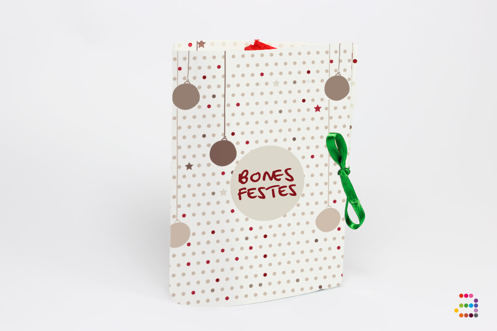 A la part esquerra de la postal tens un espai en blanc on pots escriure una dedicatòria. És una postal de Nadal que sorprendrà pel seu valor sostenible i que es tanca amb una cinteta de ras.