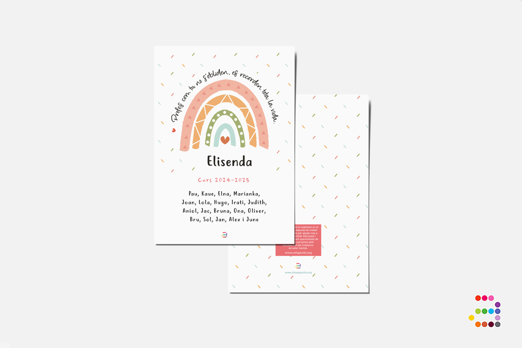 - Una làmina decorativa amb els noms de l’alumnat i del/la profe, per guardar sempre el record d’un grup únic.