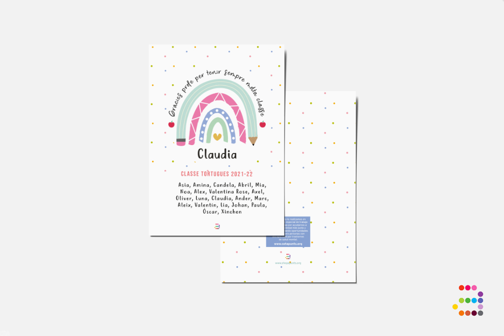 - Làmina personalitzada amb els noms de l’alumnat i del/la profe. Un record per sempre.