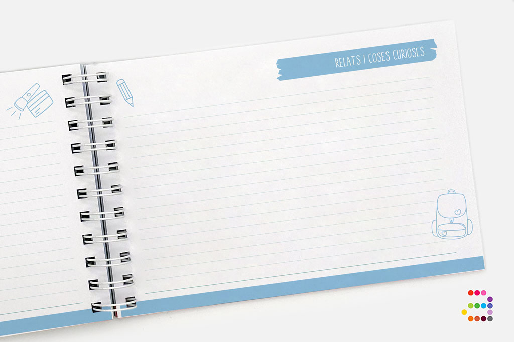 El diari té una mida de 21,9 x 14,3cm i compta amb 38 pàgines. Escull si el vols en català o en castellà. L'àlbum es tanca amb dos imants.