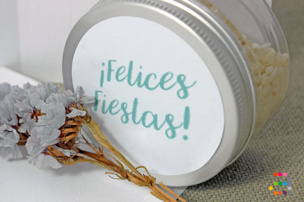 El broche final cuando envolvemos regalos de Navidad: ¡pegatinas Felices Fiestas! Van en láminas de 12 unidades.