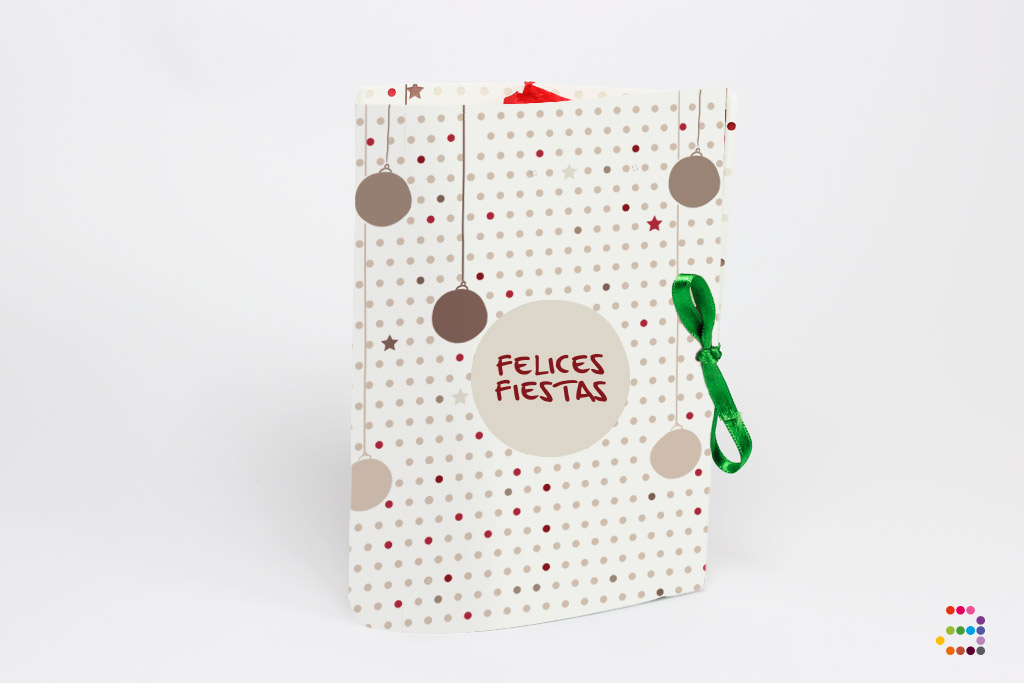 En la parte izquierda de la postal tienes un espacio en blanco donde puedes escribir una dedicatoria. Es una postal de Navidad que sorprenderá por su valor sostenible y que se cierra con una cinta de raso.