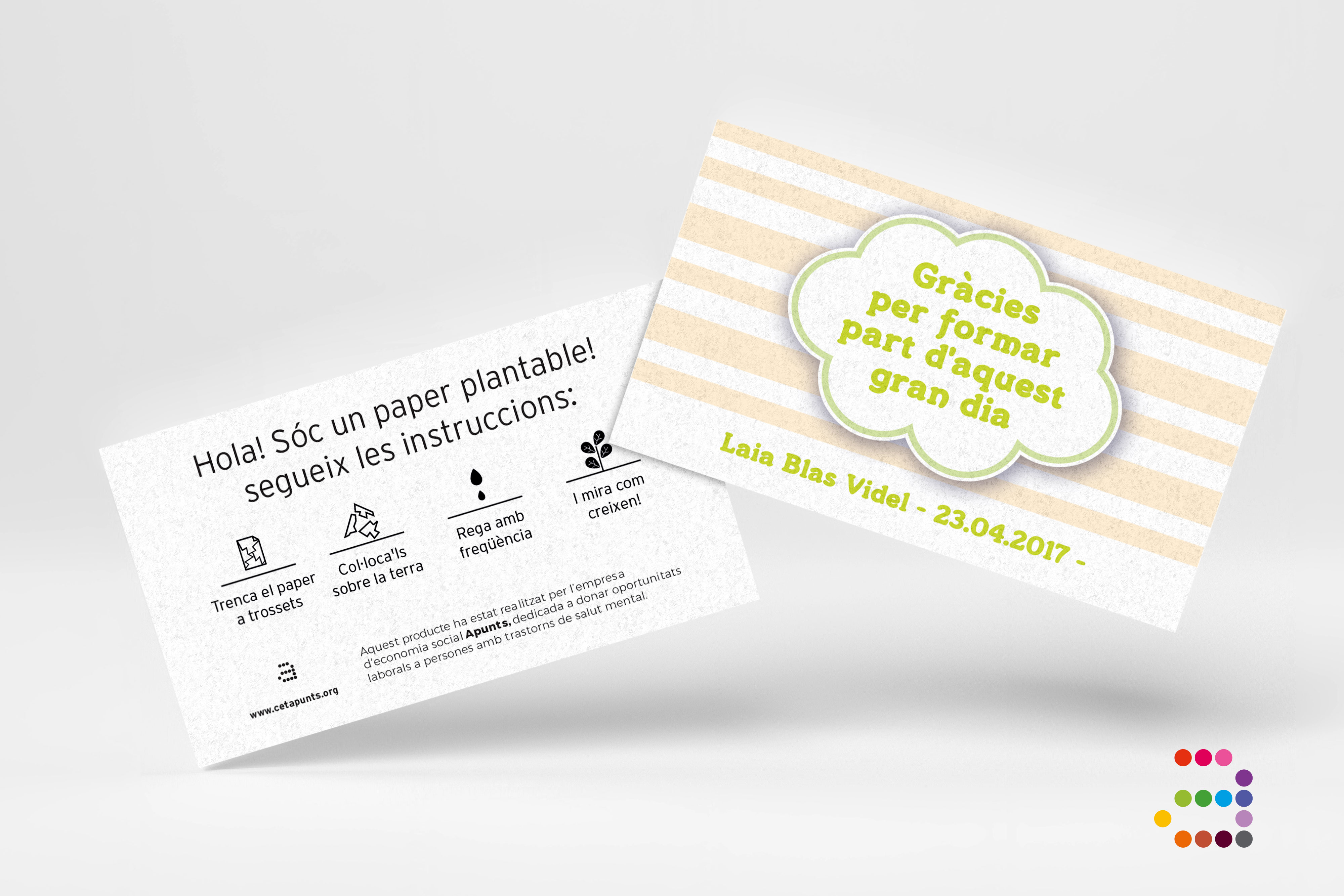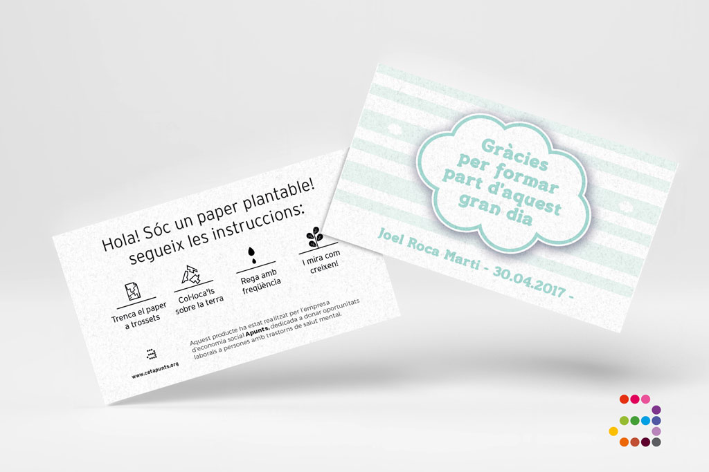 I el millor és que sigui un agraïment d'allò més sostenible, amb aquestes targetes en paper plantable :) La teva festa no passarà desapercebuda!