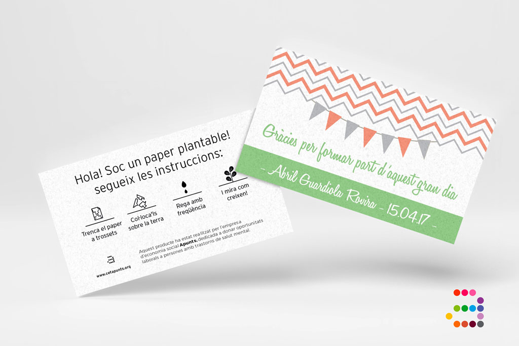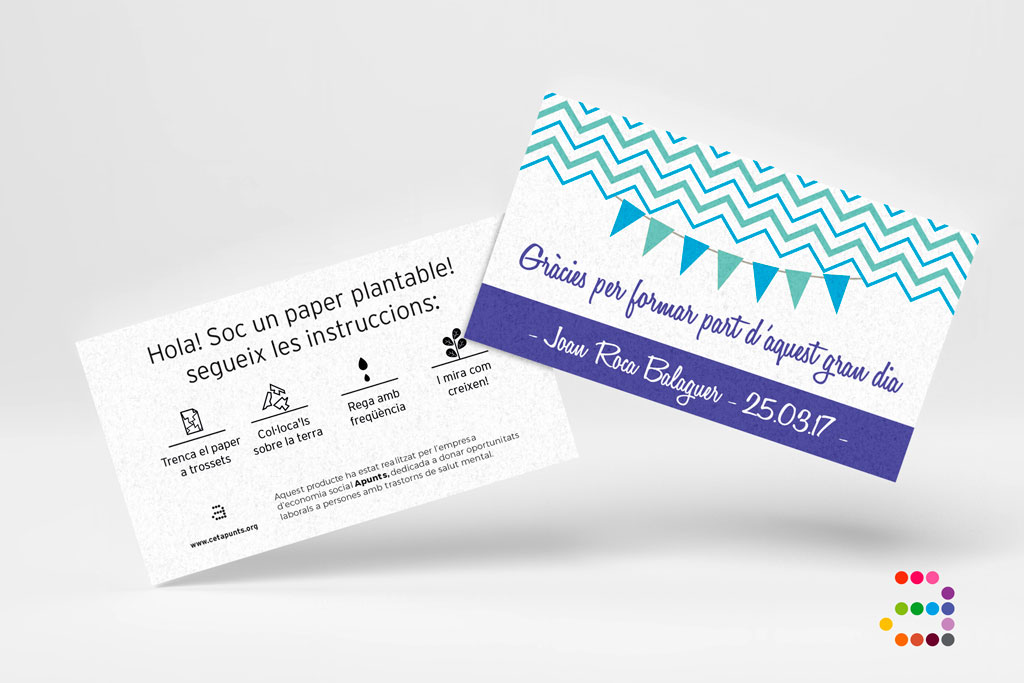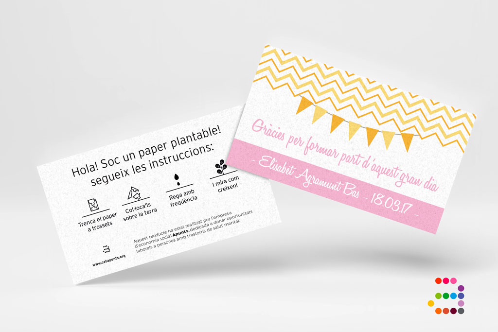 I el millor és que sigui un agraïment d'allò més sostenible, amb aquestes targetes en paper plantable :) La teva festa no passarà desapercebuda!