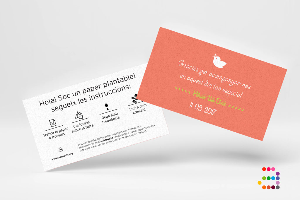 Aquestes targetes per comunió tenen una mida de 6,5x 10cm i s'imprimeixen a una cara en paper reciclado de 300 gr.