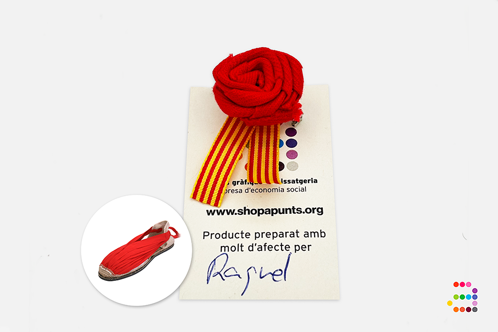 Aquest fermall rosa en tela d'espardenya de 7 vetes està realitzat de manera 100% artesanal al nostre centre especial de treball amb la tècnica de l'origami, i és un detall d'allò més alegre per lluïr el dia de Sant Jordi!