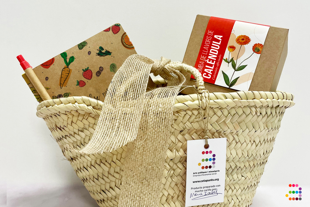 Kit Ecofriendly: Llibre de receptes amb Calèndula en cistella de vímet
