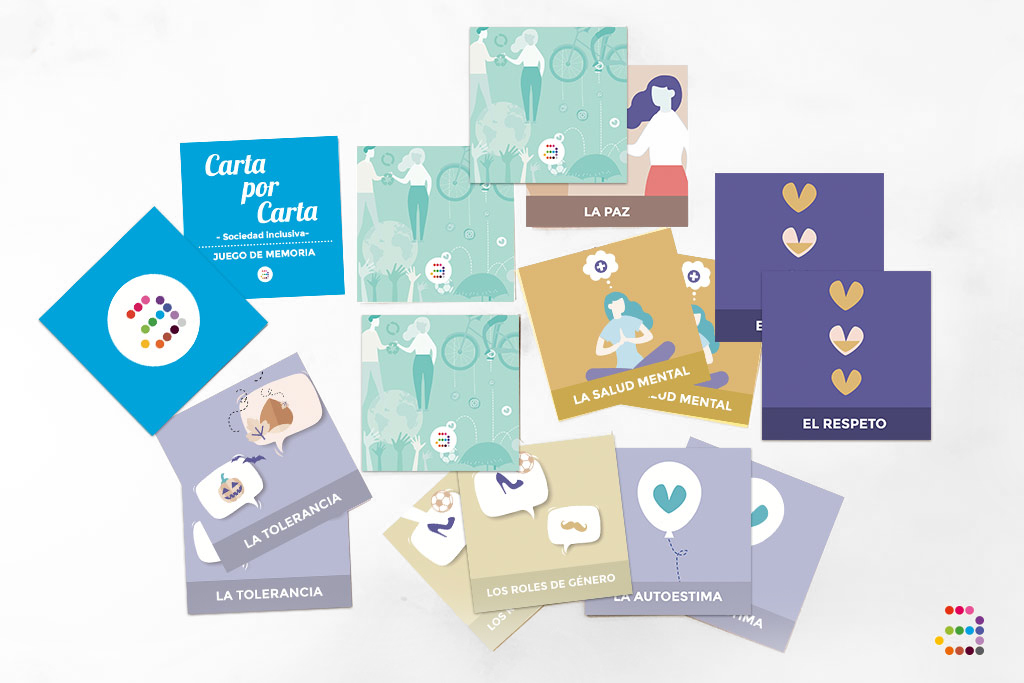 Aquest és la nostra versió del clàssic joc de memòria: el CartaxCarta et proposa el repte de memoritzar on és cada carta per relacionar 12 parelles formades per conceptes relacionats amb una societat inclusiva: l'educació, els rols de gènere, el consum responsable o la tolerància, entre d'altres.