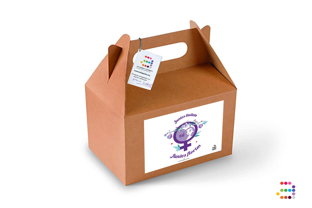 Amb el lema "Juntes lluitem, juntes florim" presentem aquest kit, ben complet i llest per a entregar als teus equips, ja sigui a la oficina o a casa seva, en una caixa tipus pícnic.