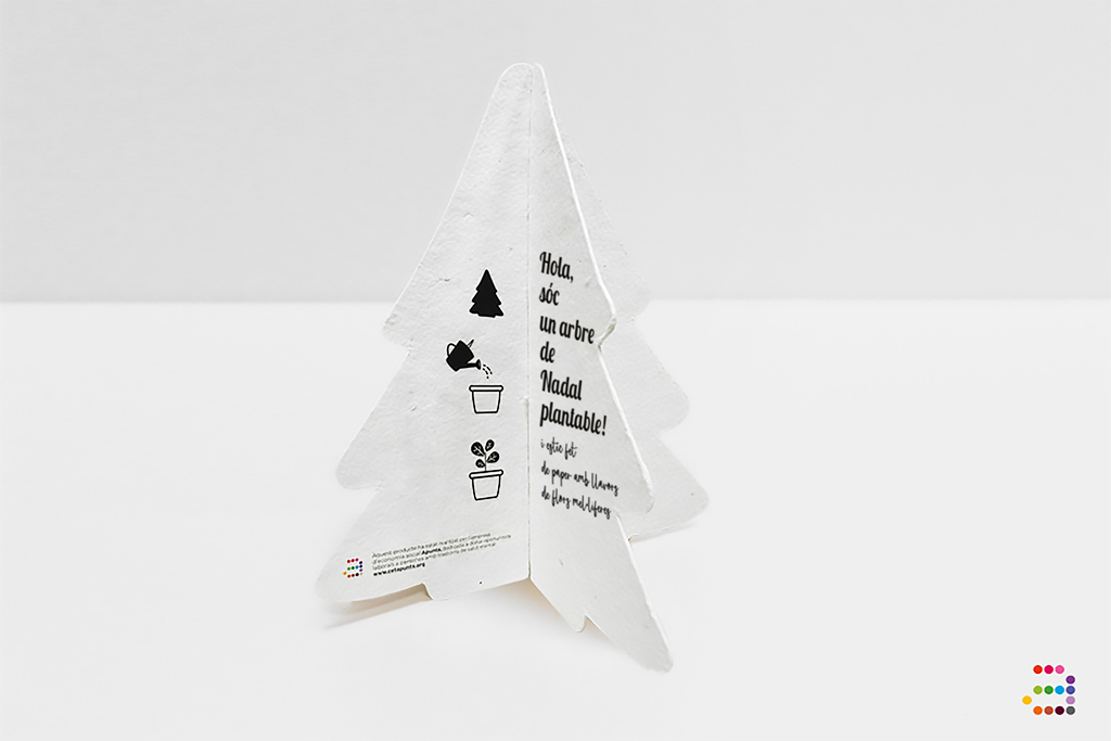 L'arbre està fet en Paper de llavors plantable.