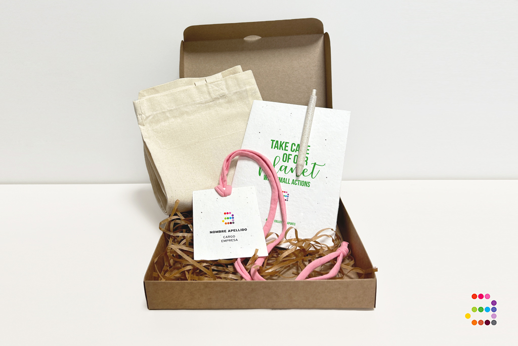 Aquesta és la teva oportunitat per fer una diferència positiva en organitzar els teus esdeveniments corporatius. El nostre Kit Sostenible per a Esdeveniments està dissenyat per reduir limpacte ambiental 100% plàstic-free.