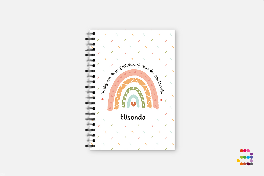 - Una llibreta mida A5 personalitzada amb el seu nom. Per seguir escrivint idees, plans i somnis.