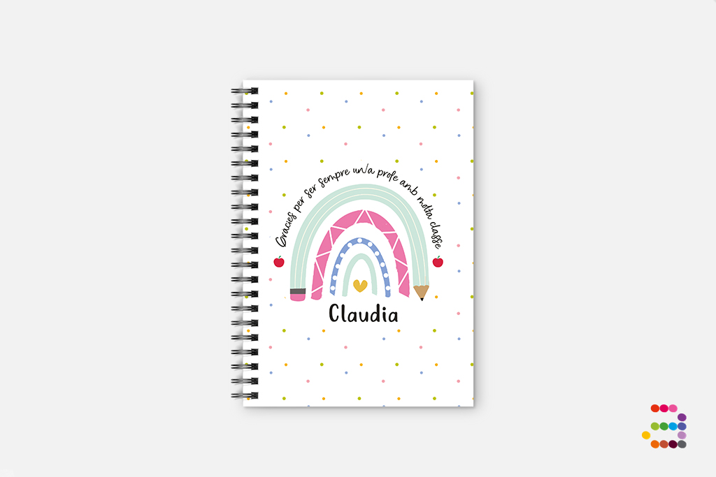 - Llibreta A5 personalitzada amb espiral, per apuntar idees, projectes o moments inspiradors.
