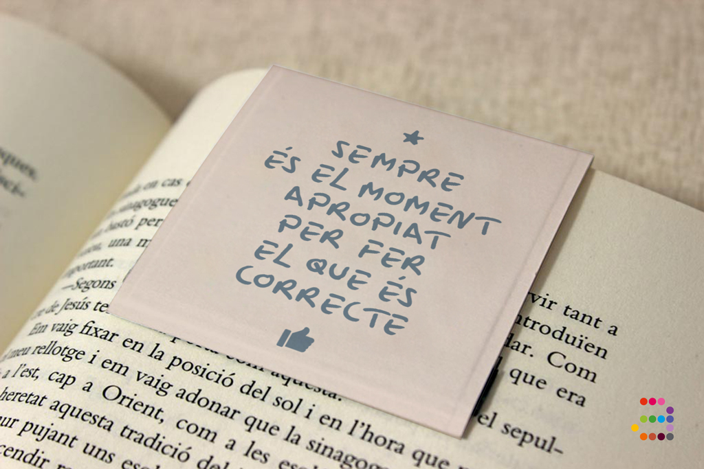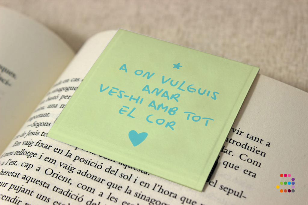 El punt de llibre Motivador té una mida de 65x155mm i va tancat amb imant. S'ha acabat això de perdre la pàgina!