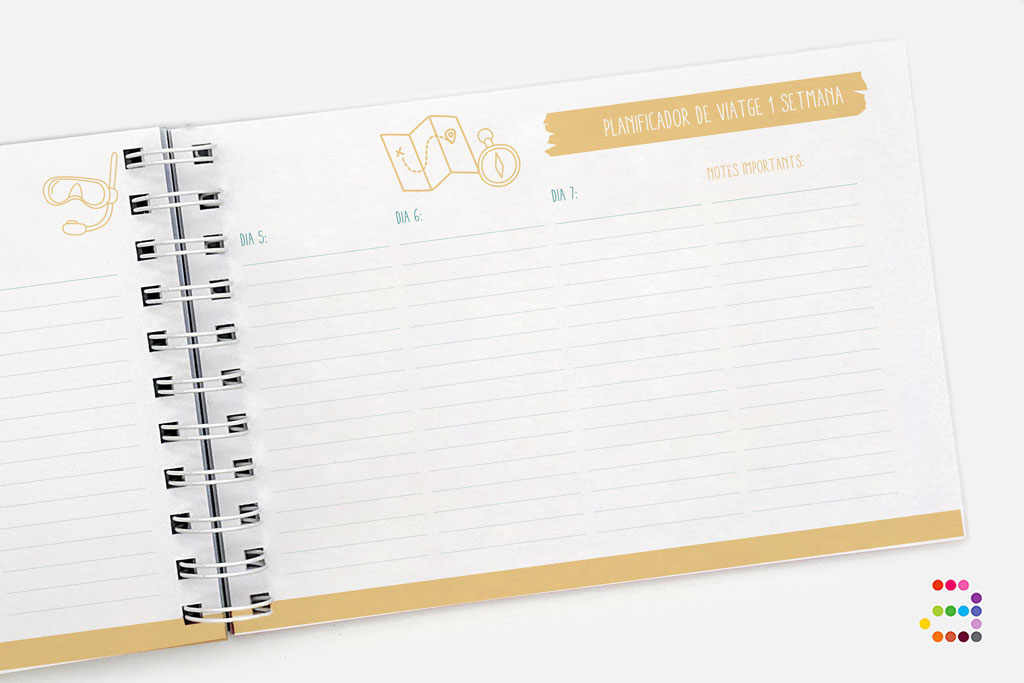 Planificació, on escriuràs el teu destí, els llocs que no et pots perdre, la planificació diària del que t'agardaria fer, un espai per anotar les paraules clau en un idioma estranger i un checklist per a totes les coses que has de posar a la maleta.