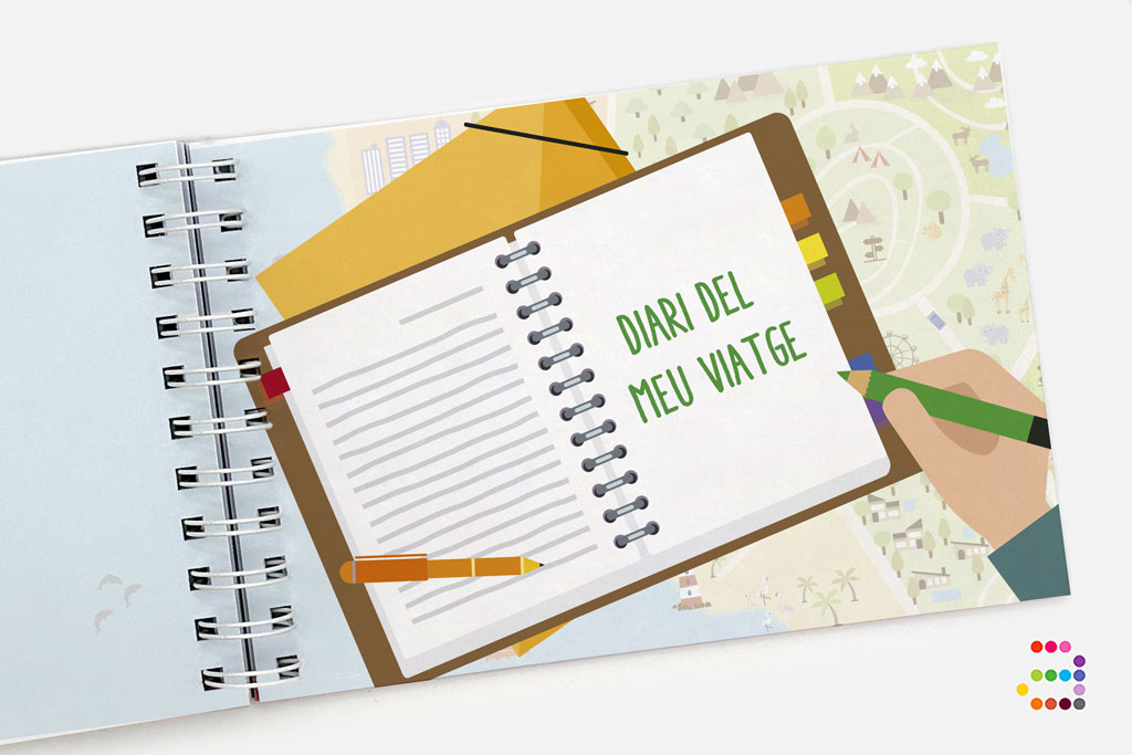 Diari de viatge. Tindràs dues pàgines per dia per a escriure i enganxar fotografies, entrades, bitllets, tickets... El que tu vulguis! Al final de tot trobaràs un espai per a ecriure el més curiós, el que has après, les teves impressions...