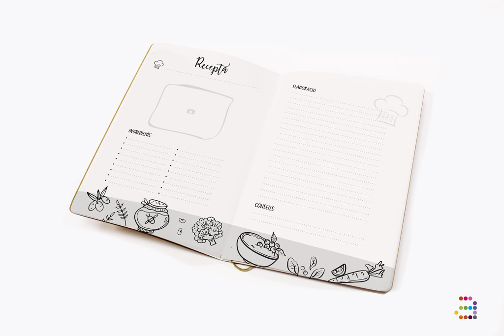 Aquest llibre de receptes amb tapes kraft té espai per a recopilar 20 receptes, amb els seus truquets i informació necessària perquè surtin per llepar-se els dits.