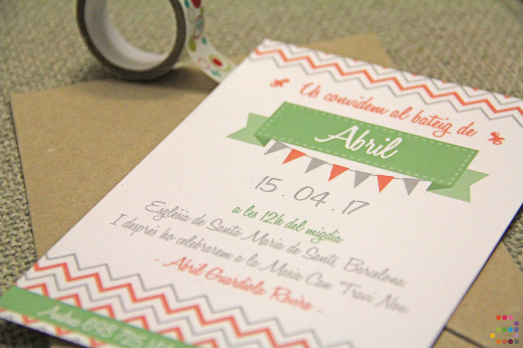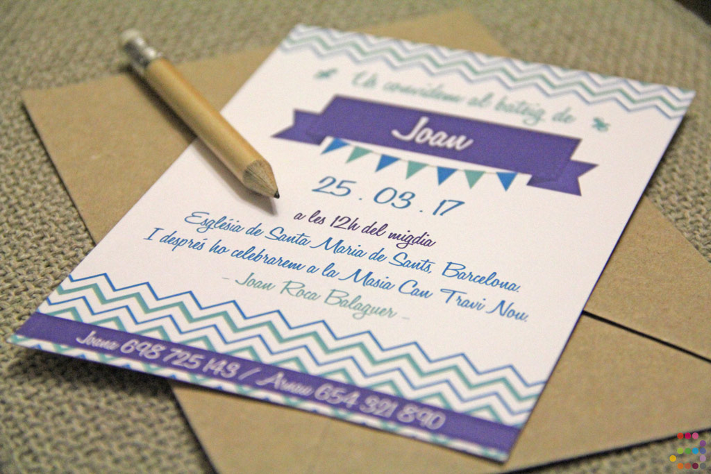 Elige el color de la invitación (azul, amarillo o rosa), el idioma, e indícanos los datos importantes que tienen que constar en tu invitación. El color del sobre es kraft.