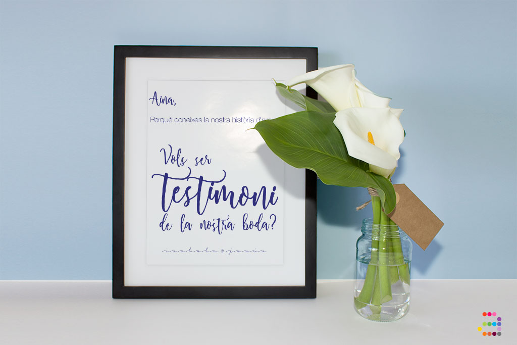 Immortaliza con esta lámina para testigo de boda el momento de pedir a esa persona especial que sea tu testigo el día de tu boda.