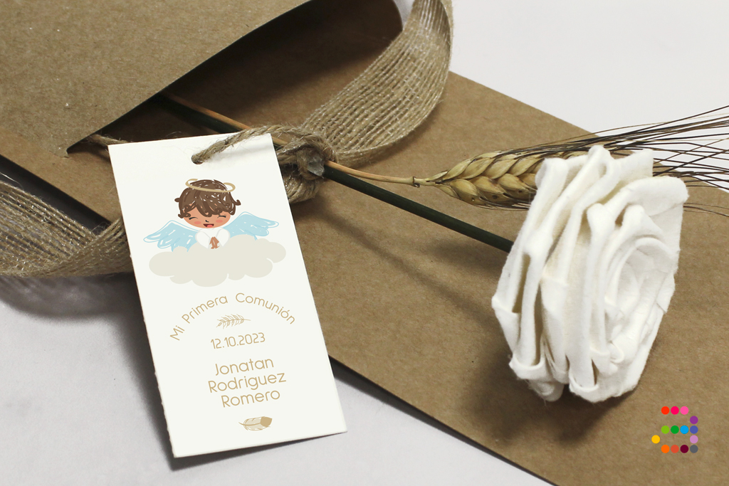 ¿De quién es la comunión? ¡Celebra esa comunión con estilazo y a conjunto con las Chapas Ángel! Una ilustración...