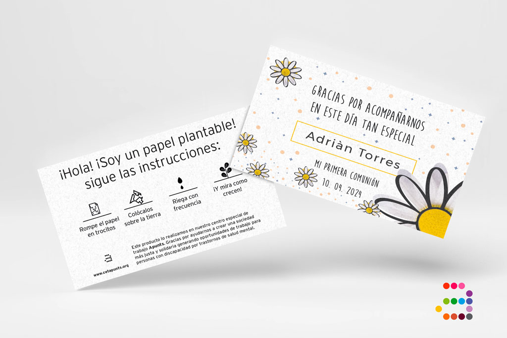 Tarjeta de agradecimiento para comunión Margarita ¡en papel plantable!