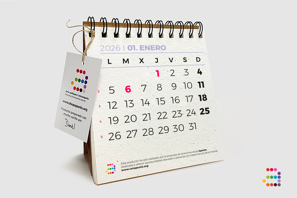 El calendario tiene una medida de 14x15cm y es ideal para tener encima de la mesa, en la oficina o en casa.