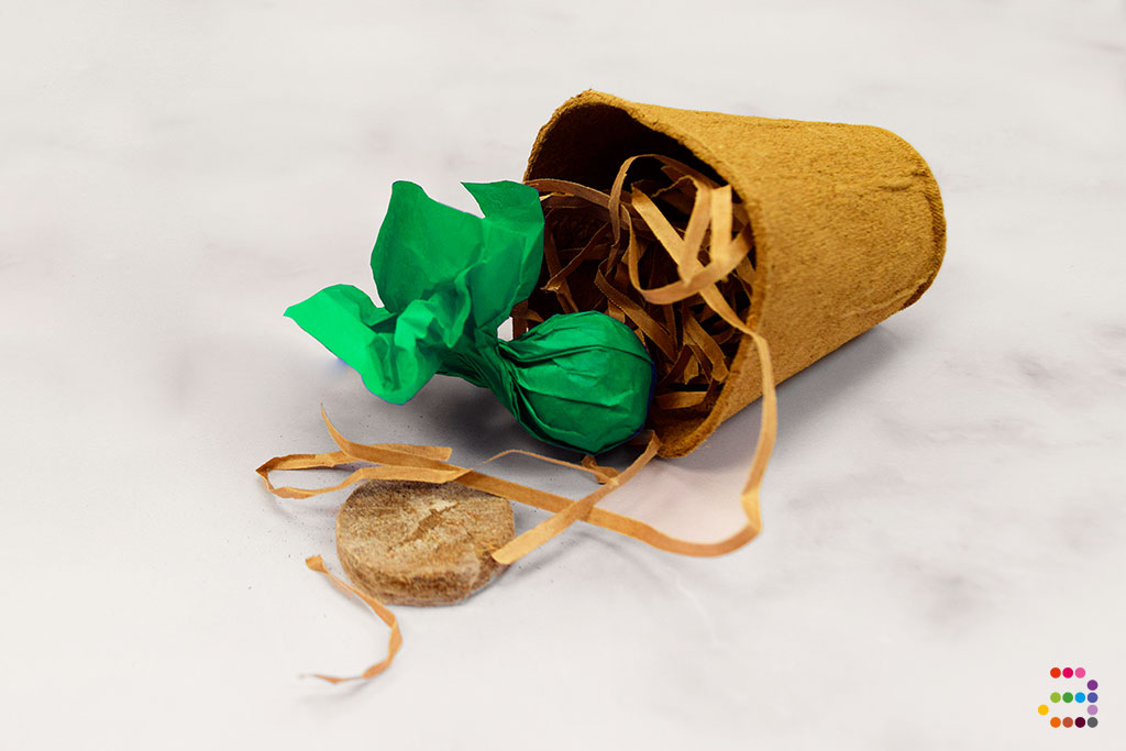 Se incluye: Una maceta biodegradable con una bomba de semillas y una turba de tierra para poder plantar. Todo esto presentado con una faja dónde encontrarás las instrucciones.