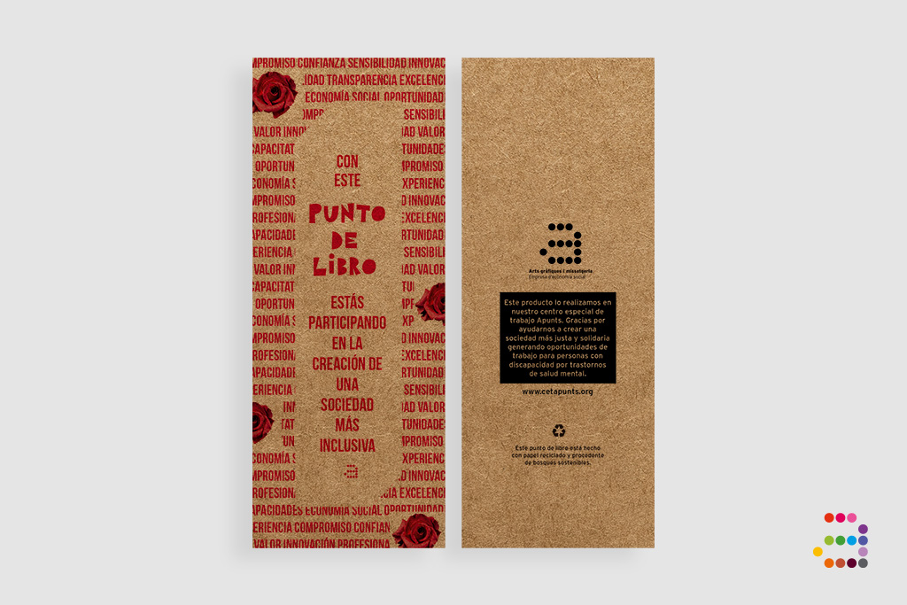 Para celebrar el día del libro, un complemento perfecto es un punto de libro. Te lo presentamos con una base kraft y con todos los valores que caracterizan Apunts y que creemos que nos deberían guiar a todos y todas en nuestro día a día. Además, con este producto contribuyes a crear una sociedad más inclusiva, ya que lo hacemos en nuestro centro especial de trabajo, donde damos oportunidades laborales a personas con discapacidad por trastorno de salud mental.