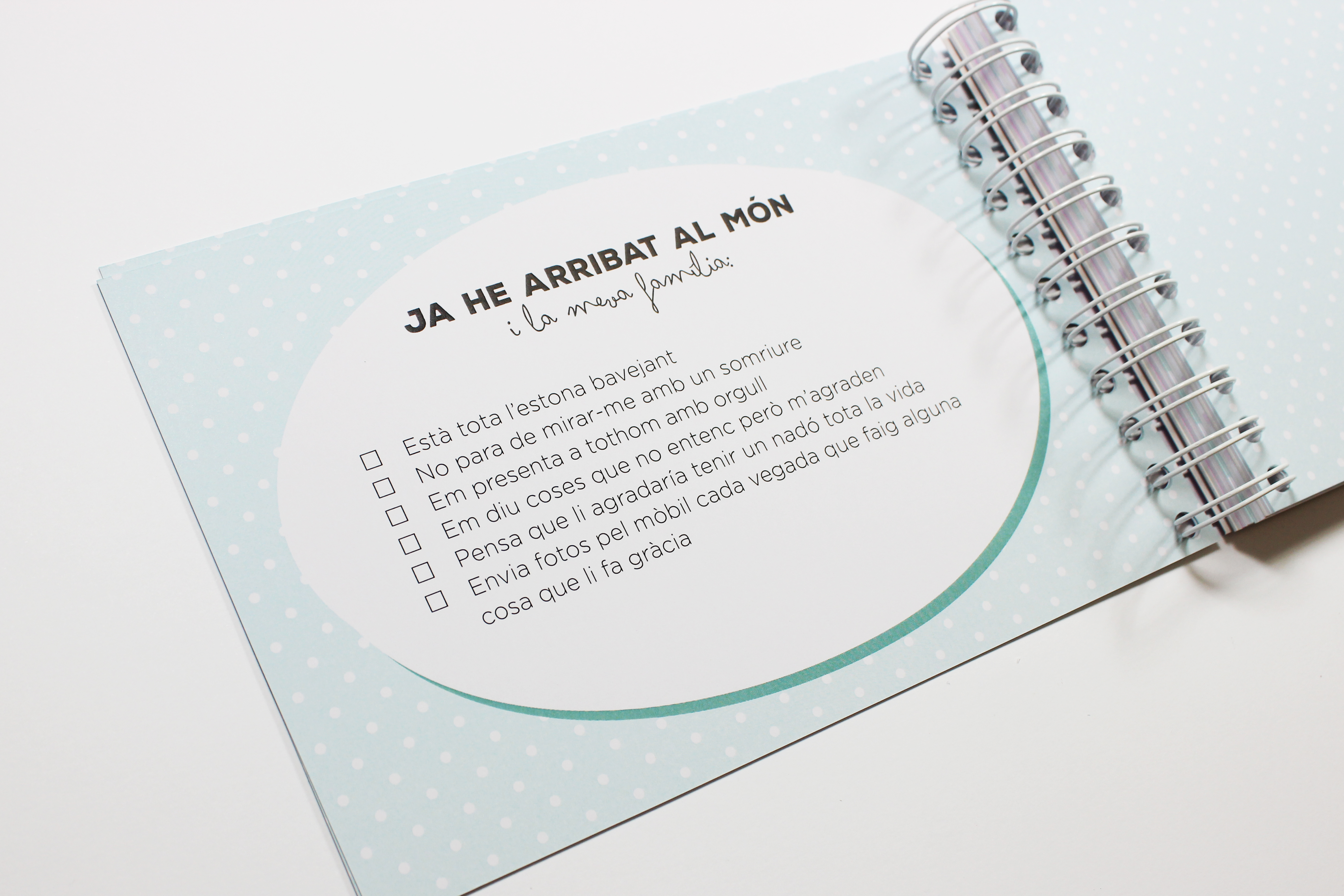 El álbum tiene un tamaño de 210x140 mm y va encuadernado con espiral.