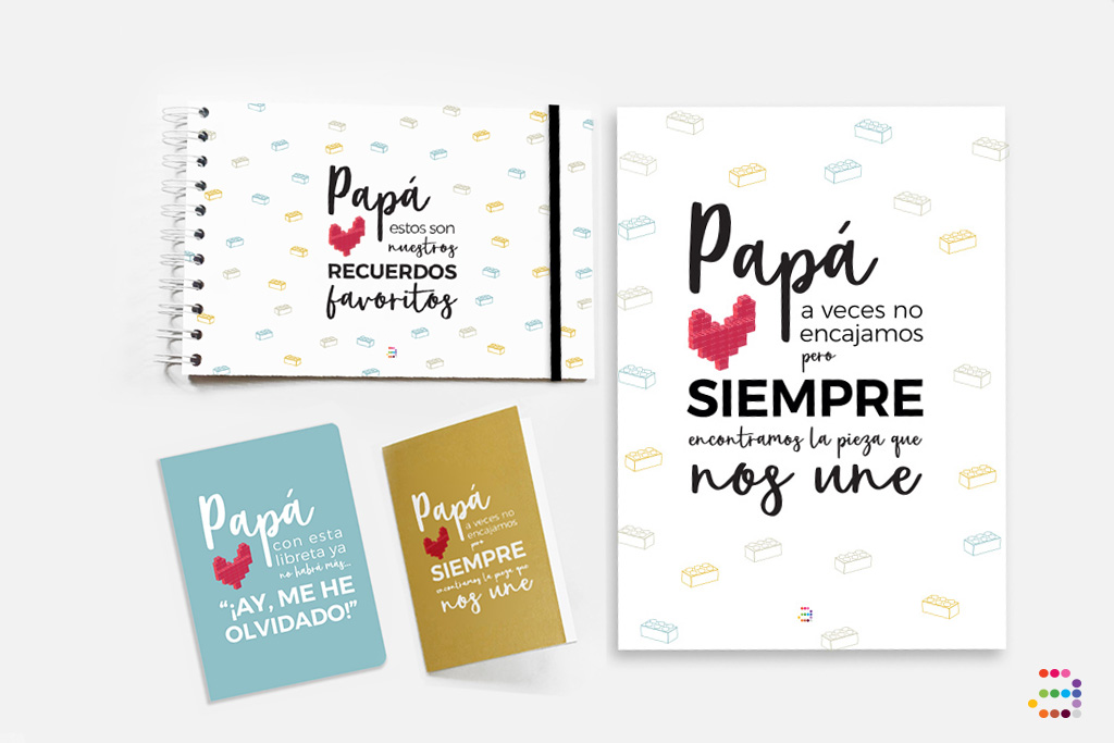 Es un hecho: con los padres nunca encajamos al 100%, pero siempre hay piezas que nos unen... ¡No podía ser de ninguna otra forma! El kit del padre representa esto a través de las piezas de un puzzle. ¿Cuántas veces habrás jugado con tu padre a montar piezas?