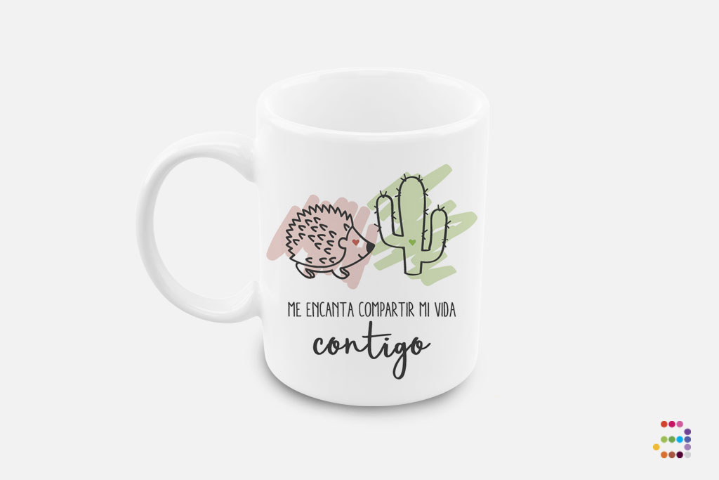 - Una taza para parejas con un mensaje genial: ¡me encanta compartir la vida contigo!
