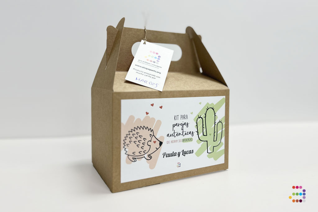 Todo ello, ¡presentado en una caja de regalo que podrás personalizar con el nombre de la pareja!
