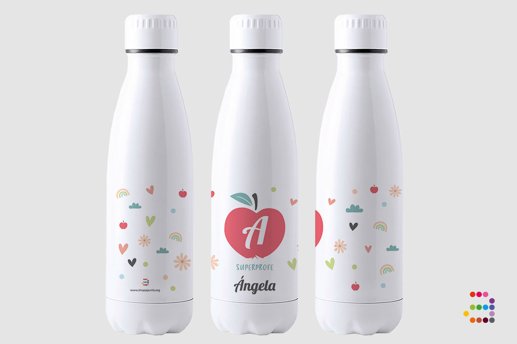 Esta botella personalizada para profes es un detalle práctico y emocional de fin de curso, pensado para agradecer su dedicación con algo bonito, útil y sostenible.