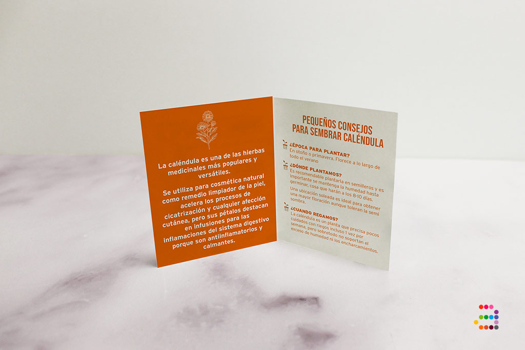 - 1 díptico informativo sobre la Caléndula de cómo y cuándo sembrar y los cuidados básicos para que tengas una planta sana y feliz.