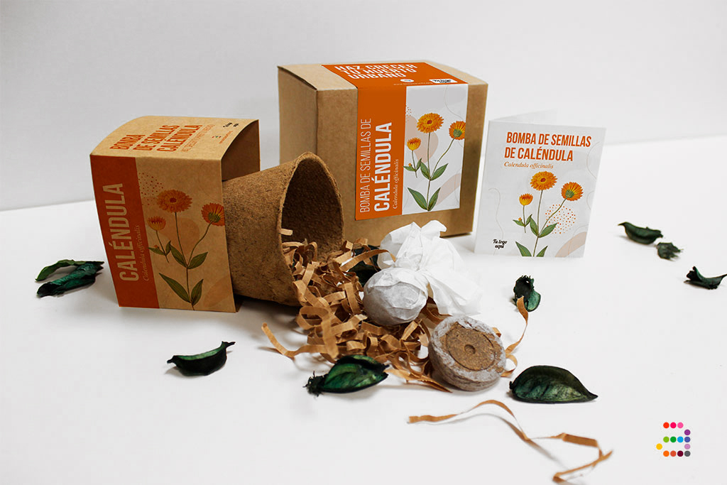 - Kit de plantación con caléndula: inicia tu pequeño huerto urbano con este Kit de plantación que contiene una bomba de semillas de caléndula. ¡prepárate las mejores infusiones y descubre las propiedades de esta fantástica planta!