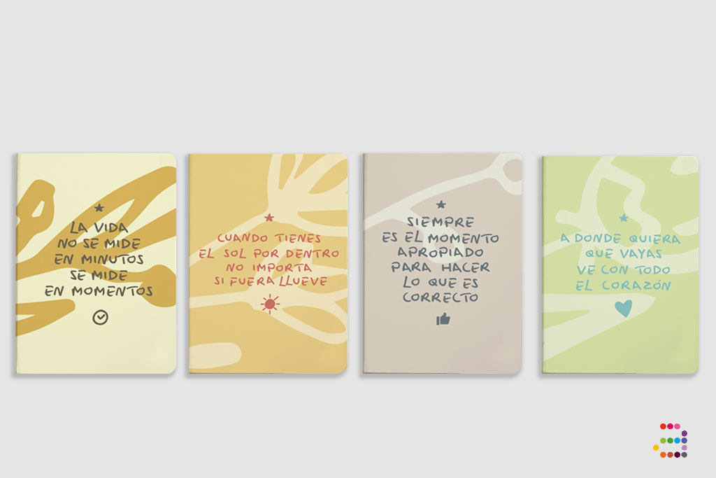 Hay 4 modelos de libretas, cada una con un color y mensaje distinto. ¡Escoge tu favorita!